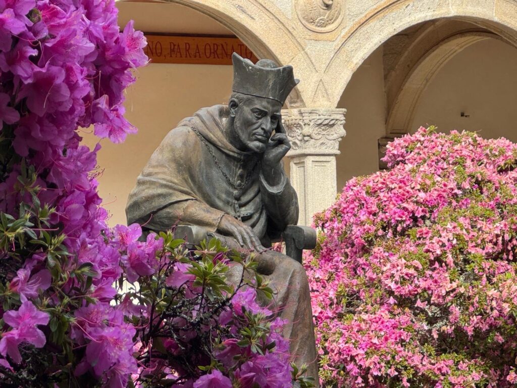 Eerst bracht Bas ons naar Astorga, een heel mooi plaatsje met een prachtig centraal plein waarop twee kerkelijke gebouwen staan. Allereerst de oude kathedraal, met veel Gotische elementen en twee barokke torens. Tijdens mijn wandeling in 2018 ben ik hier naar de mis geweest. Ik was de enige pelgrim te midden van zo’n 20 oudere dames die uiterst devoot de doordeweekse mis beleefden en na afloop allemaal naar me toe kwamen voor een praatje en om me Buen Camino te wensen.